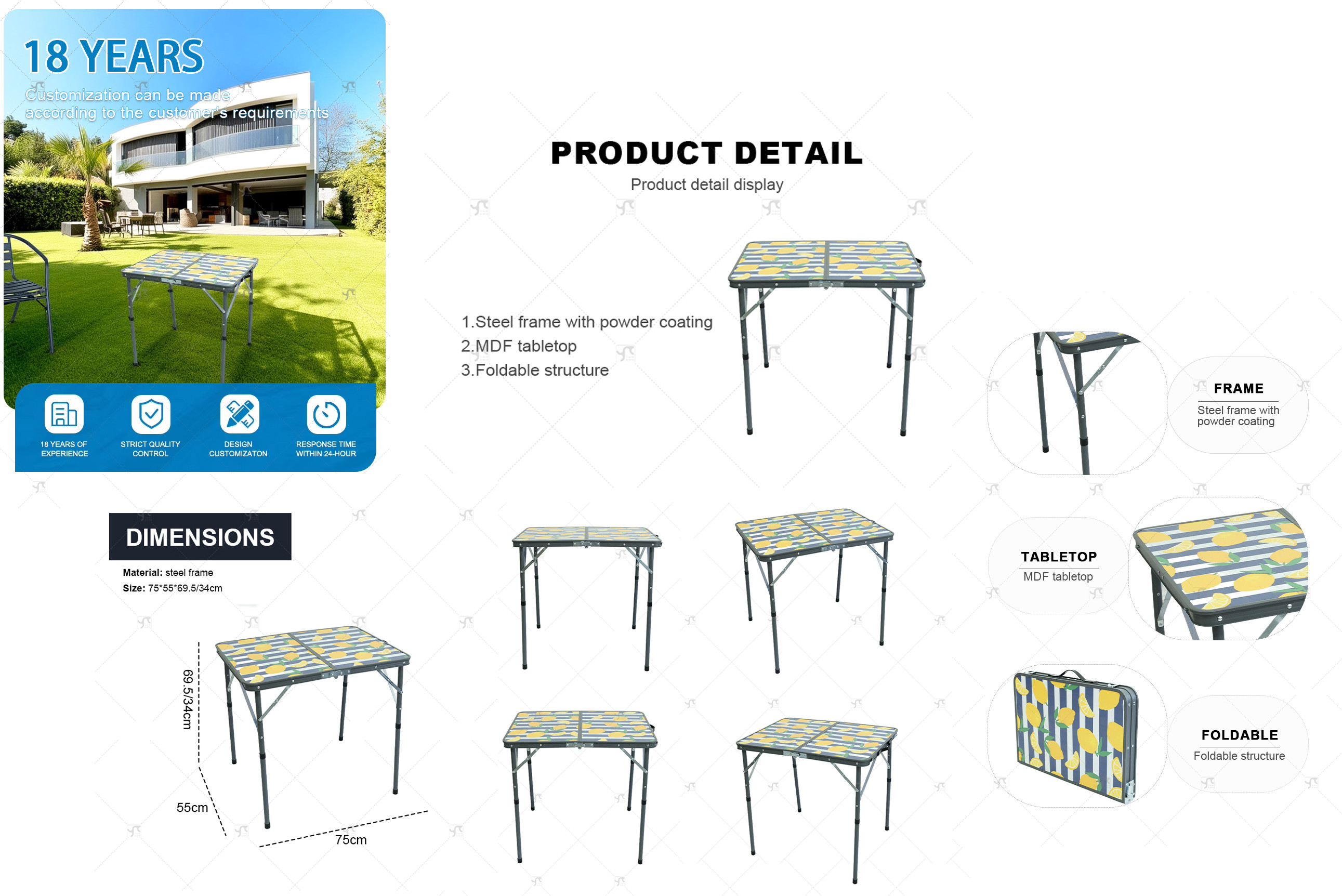 High Quality Portable Lron Frame Foldable Garden and Kitchen Furniture Fancy Blossom Design for Outdoor Camping and Picnic Table