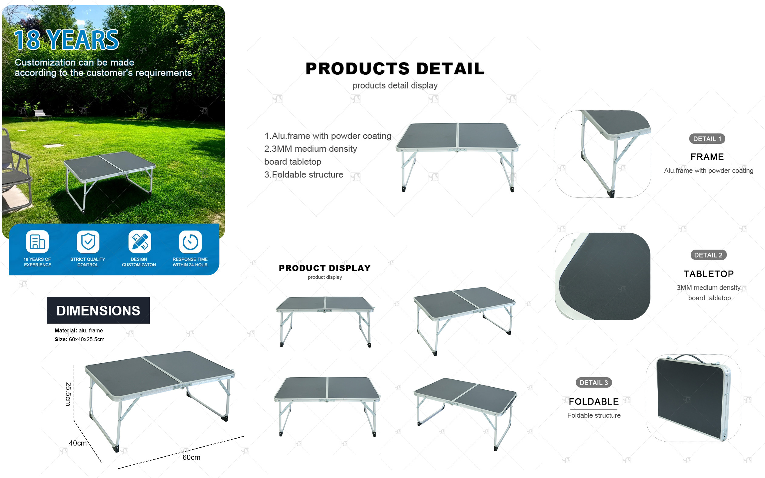 Outdoor Portable Aluminum Folding Picnic Table and Chair Set for Camping Easy-to-Carry Outdoor Furniture for Parks and Courtyard