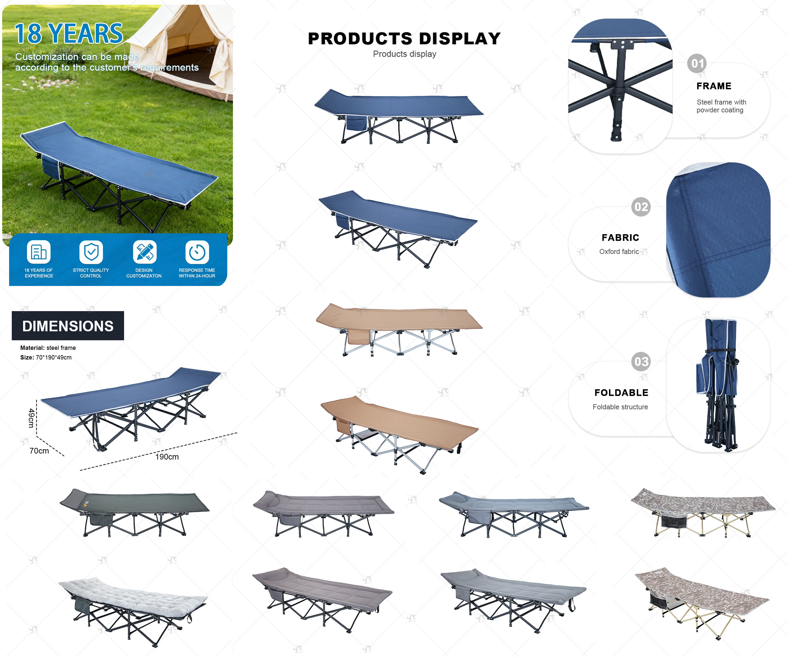 Outdoor Folding Bed Beach Folding Lounge Chair Noon Break Outdoor Camping Portable Folding Metal Single Sofa Bed Lunch Break Bed