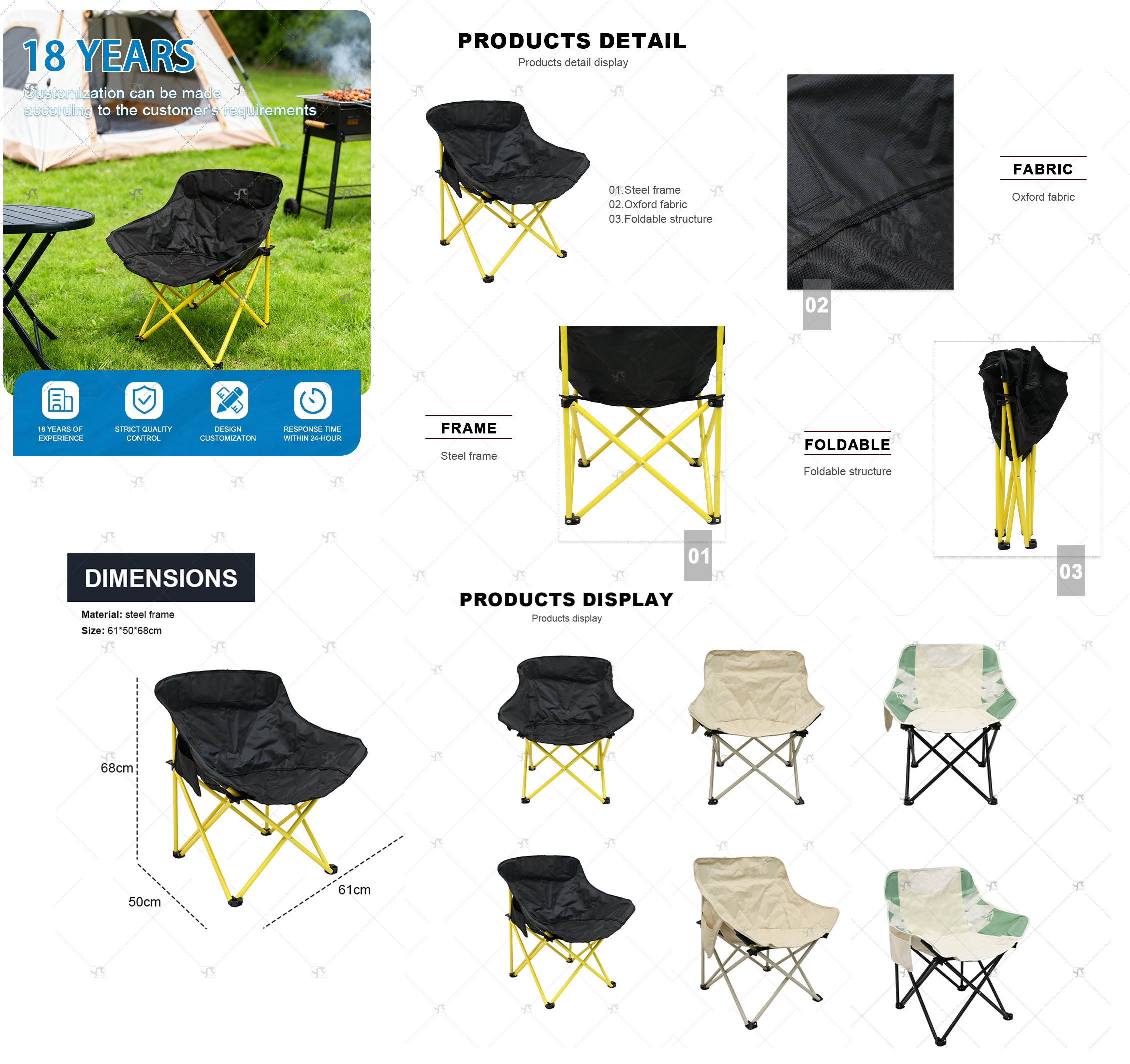 Portable steel frame Outdoor Moon Chair Small Folding Beach Picnic Fishing Stool Reclining Camping Chair with Portable Design