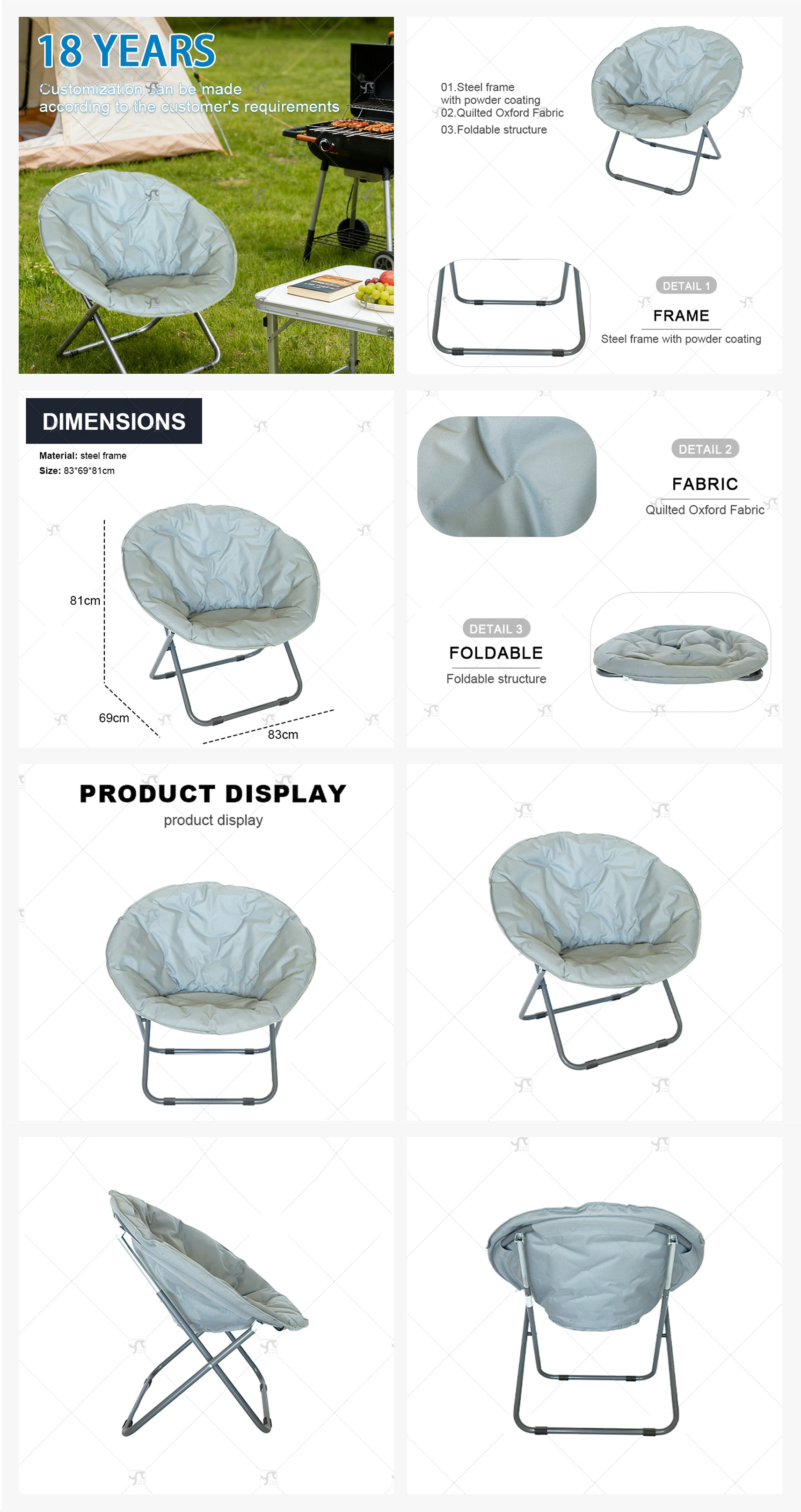 Outdoor Leisure Portable Folding Camping Moon Chair Foldable Metal Oxford Beach Lounge Chair for Outdoor Park Use Factory Direct
