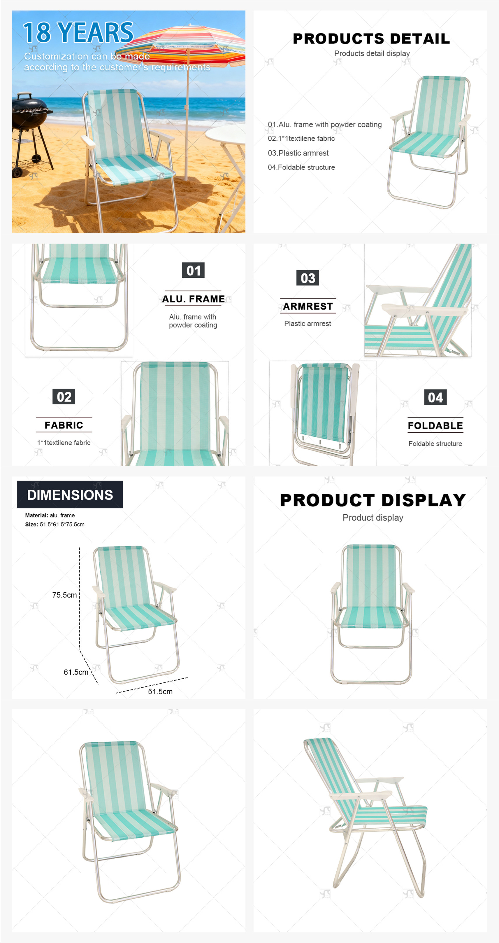 Hot Sales Aluminum Outdoor Lightweight Portable Compact Picnic Camping Hiking Picnic Spring Beach Sea Folding Chair for Event