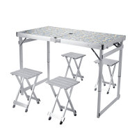 Folding table set, equipped with four chairs, can be directly in the table, convenient to carry.