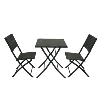 Steel Tube Rattan Chair Black Bistro 3 Piece Set Foldable Outdoor Rattan Chair Folding Rattan Chair and Table