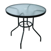 Outdoor Patio Side Table Garden Round Table with Water Wave Glass Metal Steel Iron Dining Outdoor Table for Garden