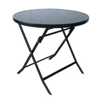 Outdoor Folding Patio Side Table Garden Round Table with Silk Printing Glass Metal Steel Iron Dining Outdoor Table