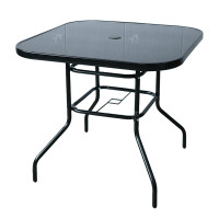 Outdoor Patio Side Square Table Garden Table with Silk Printing Glass Metal Steel Iron Dining Outdoor Table