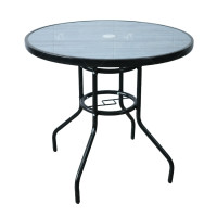 Outdoor Steel Patio Side Table Garden Round Table with Printed Glass Metal Steel Iron Dining Outdoor Table for Garden