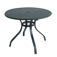 Outdoor Patio Round Table Garden Round Table with Steel Slat Tabletop Metal Steel Iron Dining Outdoor Table for Garden