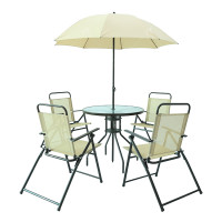 2x1 Teslin Six Piece Patio Garden Furniture Set With Umbrella Table and Set of Four Chairs with Foldable Structure