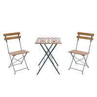 Outdoor Coffee Sets Foldable Wood Slat Table and Foldable Chair Camping Patio Dinning Steel Garden Chair Three-piece Sets