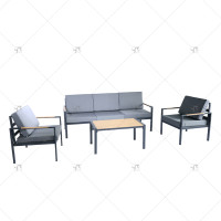 Durable 4Pieces Outdoor Metal Sofa Set with Coffee Table Patio Sectional Furniture Chat Sofa Conversation Set with Gray Cushions