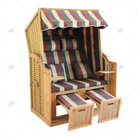 Outdoors 2-Seater Beach Chair Adjustable Backrest Fully Reclining Footstools Protective Cover Cushion for Balcony/Garden Patio