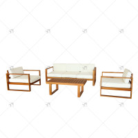 Modern 5-Seat Outdoor Patio Garden Sofa Set Eucalyptus wood frame Natural White Cushions Hot Transfer Printing Design for