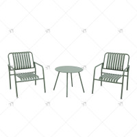 Modern Design Outdoor Steel Plate Table and Metal Outdoor Stool Set Square 2 -Person Steel Slat Seat and Back Chair Set of 3